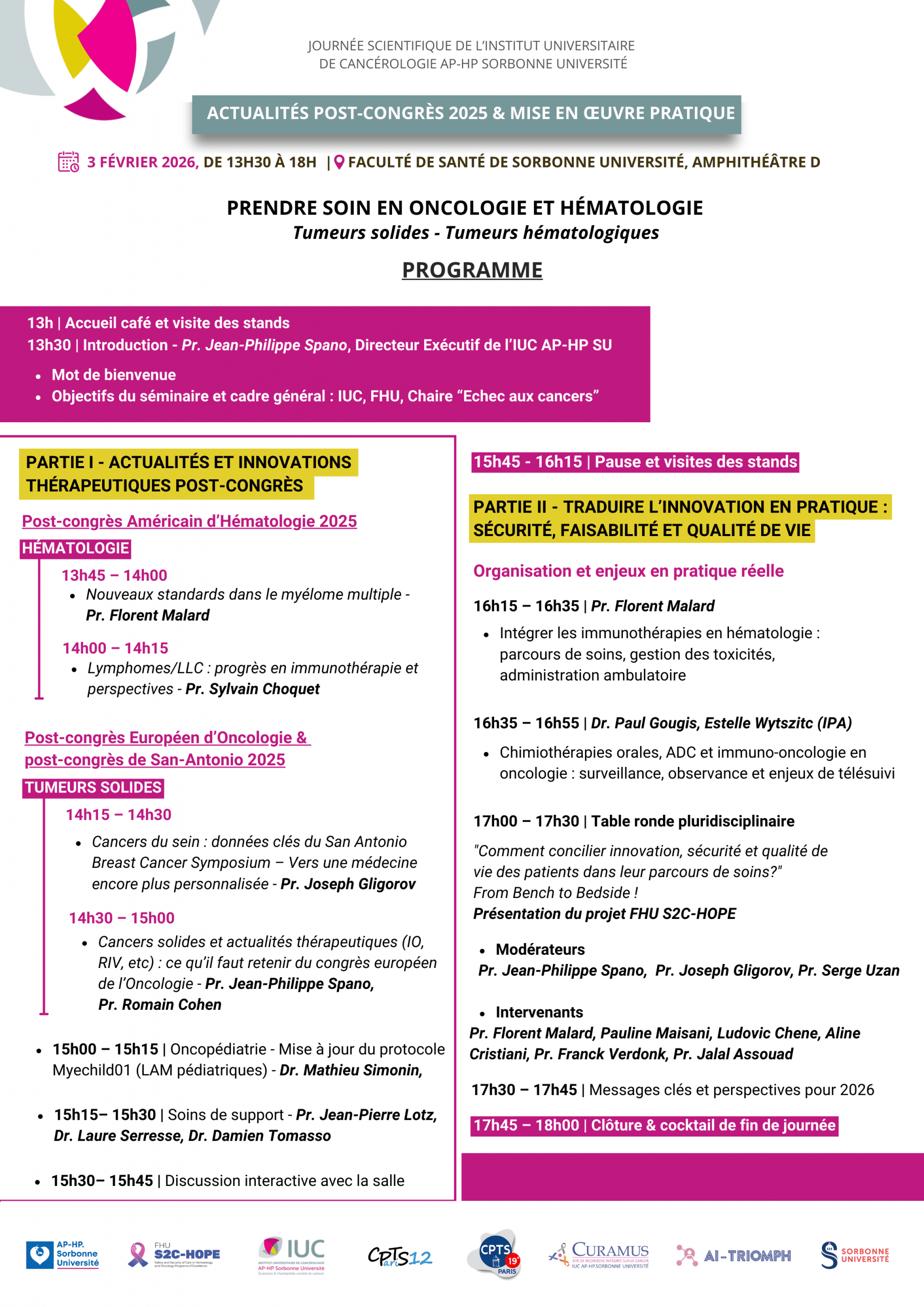 - Modérateurs : Pr. Jean Philippe-Spano, Pr. Joseph Gligorov, Pr. Serge Uzan